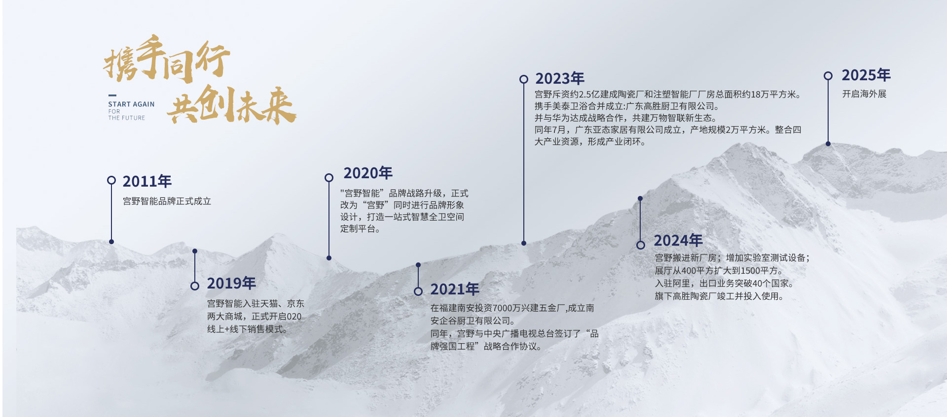 我们一直致力于为更美好的生活研发品。2024年宫野展厅从400平方扩大到1500平方,旗下高胜陶瓷厂竣工投入使用,出口业务突破40个国家,并入驻阿里,开启海外展。